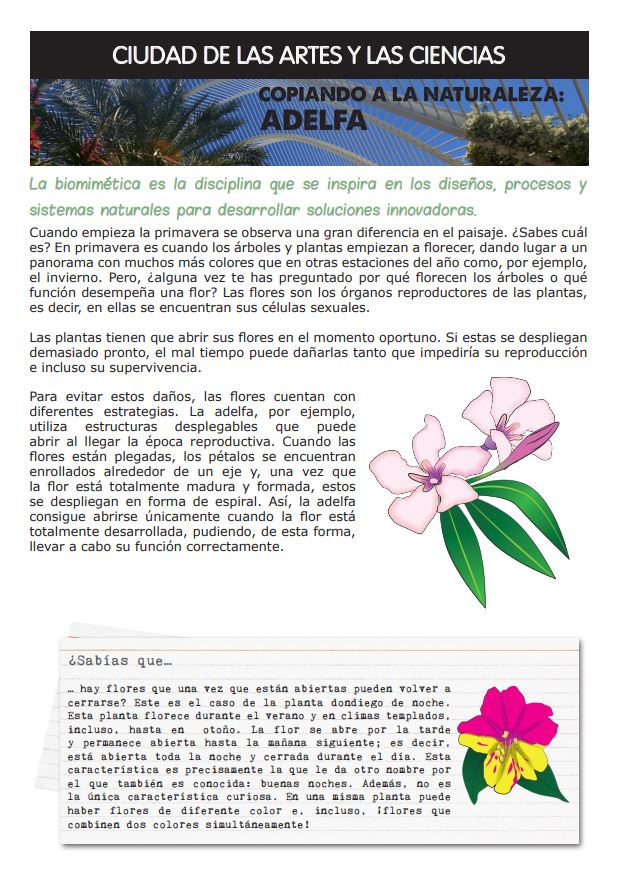 | Primaria - Secundaria | Ficha biomimètica Adelfa |  | Descarga aquí el contenido | Ciencias Naturales | Umbracle |